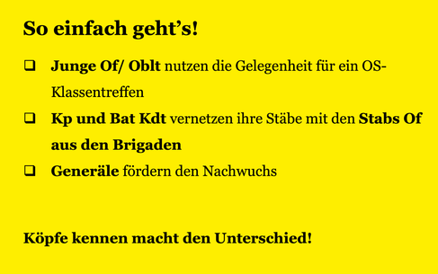 Die aktuelle Planung behält die etablierten und erfolgreichen Bestandteile der vergangenen Jahre bei. Gleichzeitig haben wir folgende vier Highlights neu eingeplant: 1) OG Panzer Podcast Start-Event; 2) Launch unserer OG Panzer Mobile-App (ein weiteres Modul zur digitalsten Offiziersgesellschaft der Schweiz); 3) Ansprache vom Chef der Armee (CdA) KKdt Thomas Süssli persönlich (Termin bestätigt); 4) Austausch und Netzwerk unter unseren gelben Offizieren steht im Fokus: Reduktion des formellen Teils, mehr Zeit für Netzwerkpflege - also weniger “blabla" und mehr "päng"!